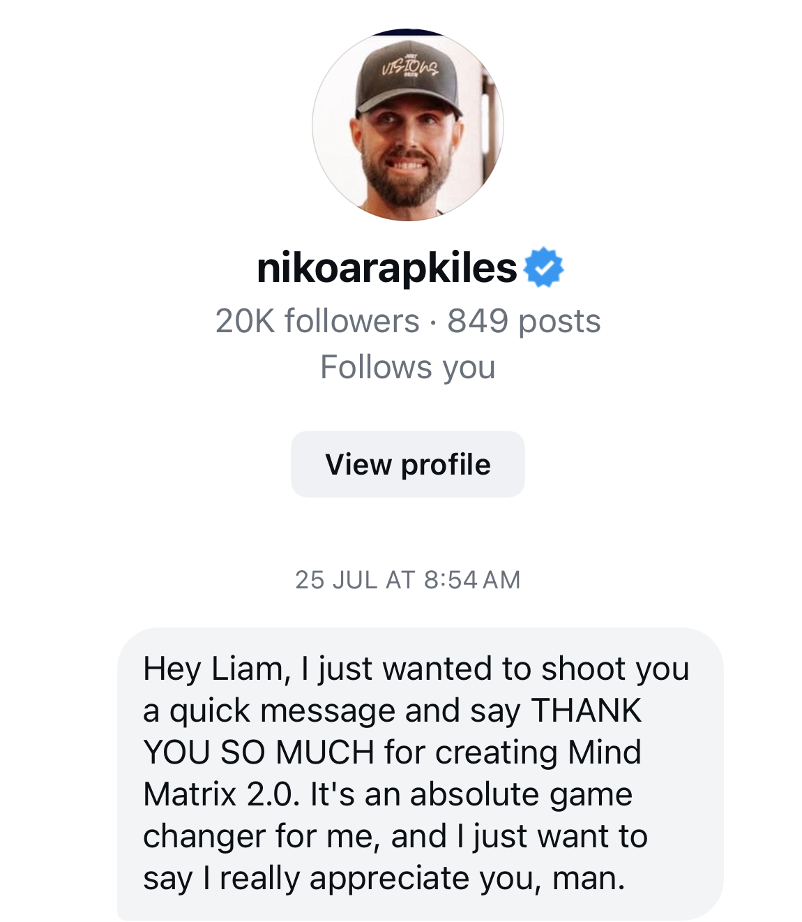 Hey — I’m Liam, creator of Mind Matrix OS.